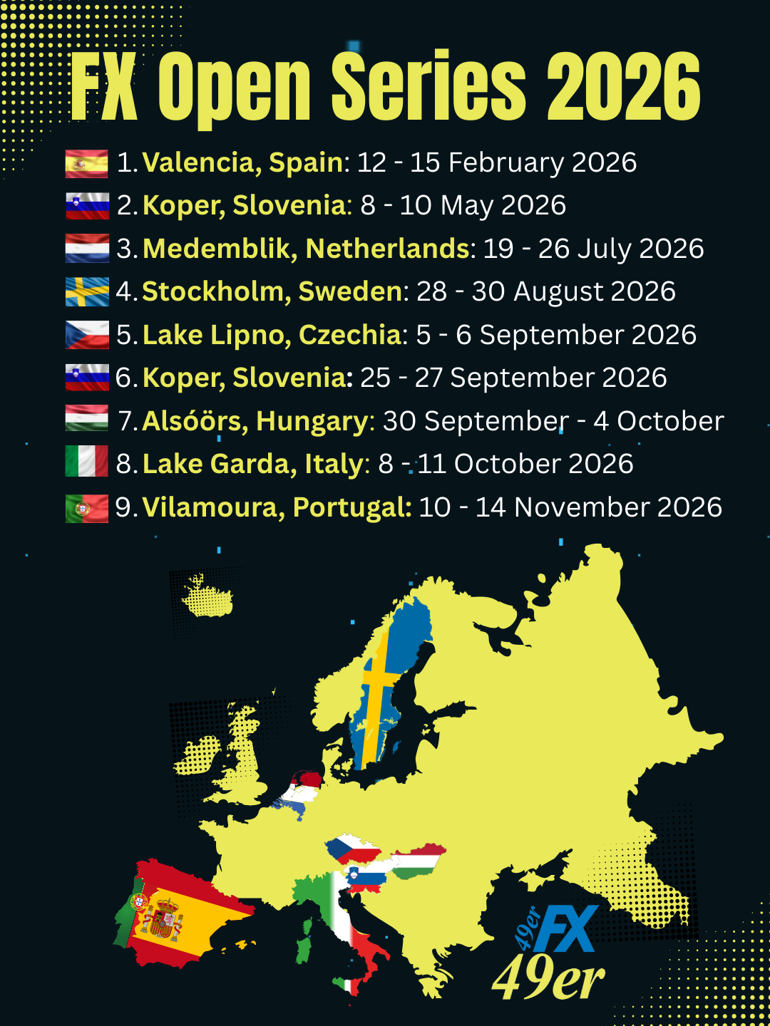 The 2026 49erFX Open Series is set to return with an exciting European circuit, offering a full season of high-quality racing, great venues, and a welcoming environment for teams entering or developing in the 49er class.