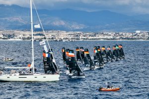 On the 49erFX side, it’s Conti and Clapcich who are in the lead. They didn’t have their best day but did better than Echegoyen and Betanzos who slip to third after leading going into the day. With only 11 points separating the top thee the 49erFX course will be the one to watch on the final day.