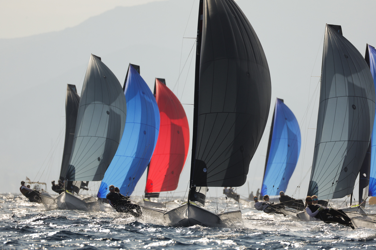 Some great breeze for foiling in the catamarans and full-on planing in the skiffs, with some surprise leaders in the 49er and 49erFX and a not-so-surprising new leader in the Nacra 17 fleet…